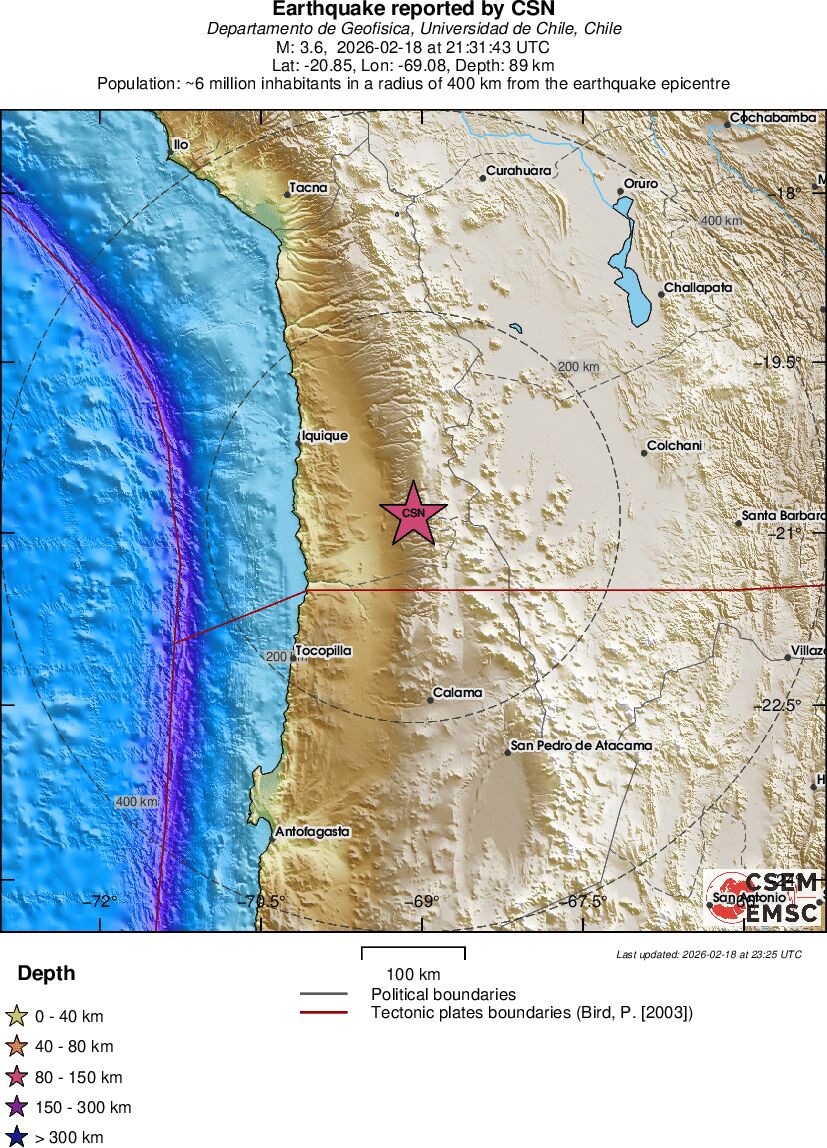 | 3.6 | 89.3 | 8115 | 21:31 | Link | Minor Earthquake- TARAPACA, CHILE - Today |