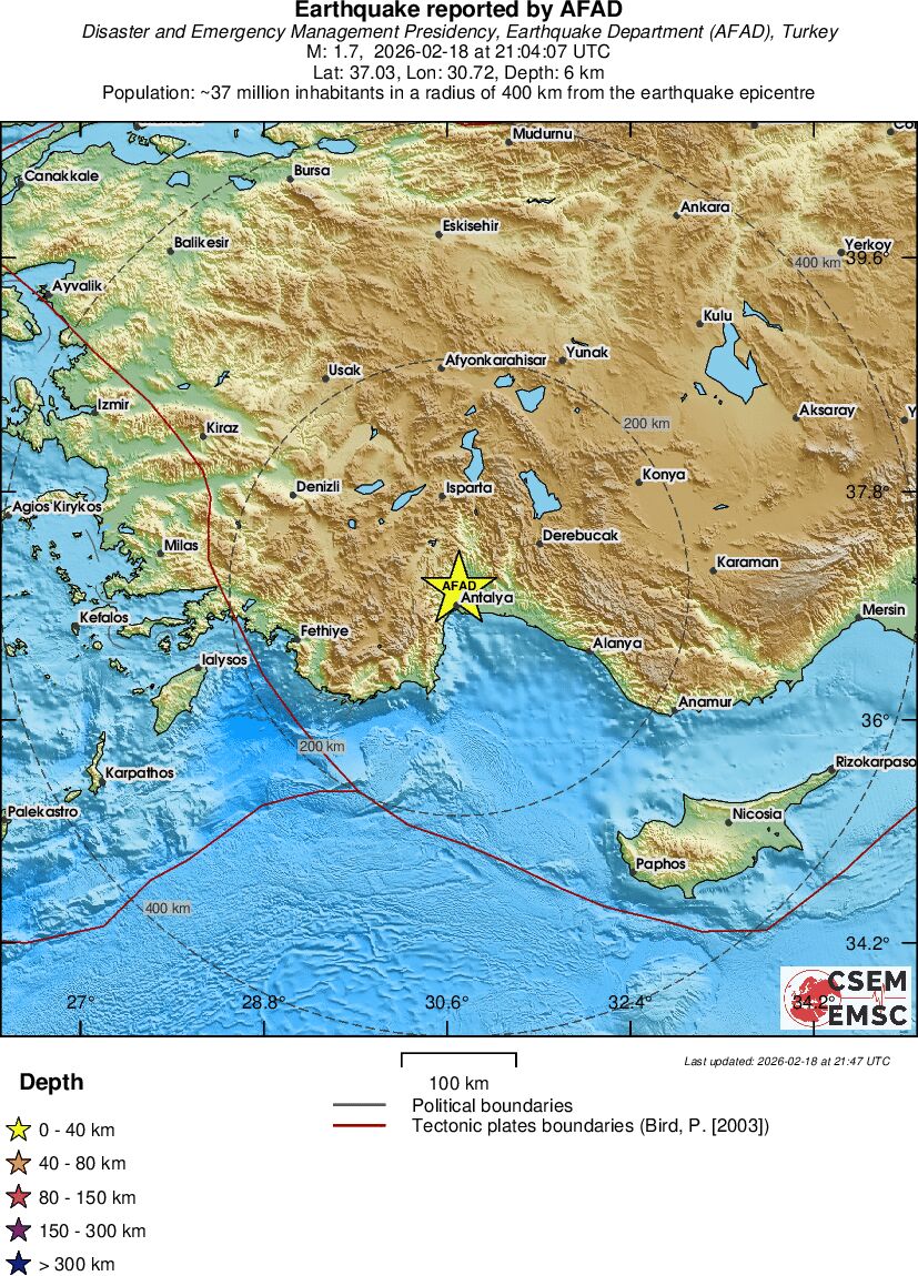| 1.5 | 7.6 | 4049 | 21:02 | Link | Minor Earthquake- WESTERN TURKEY - Today |