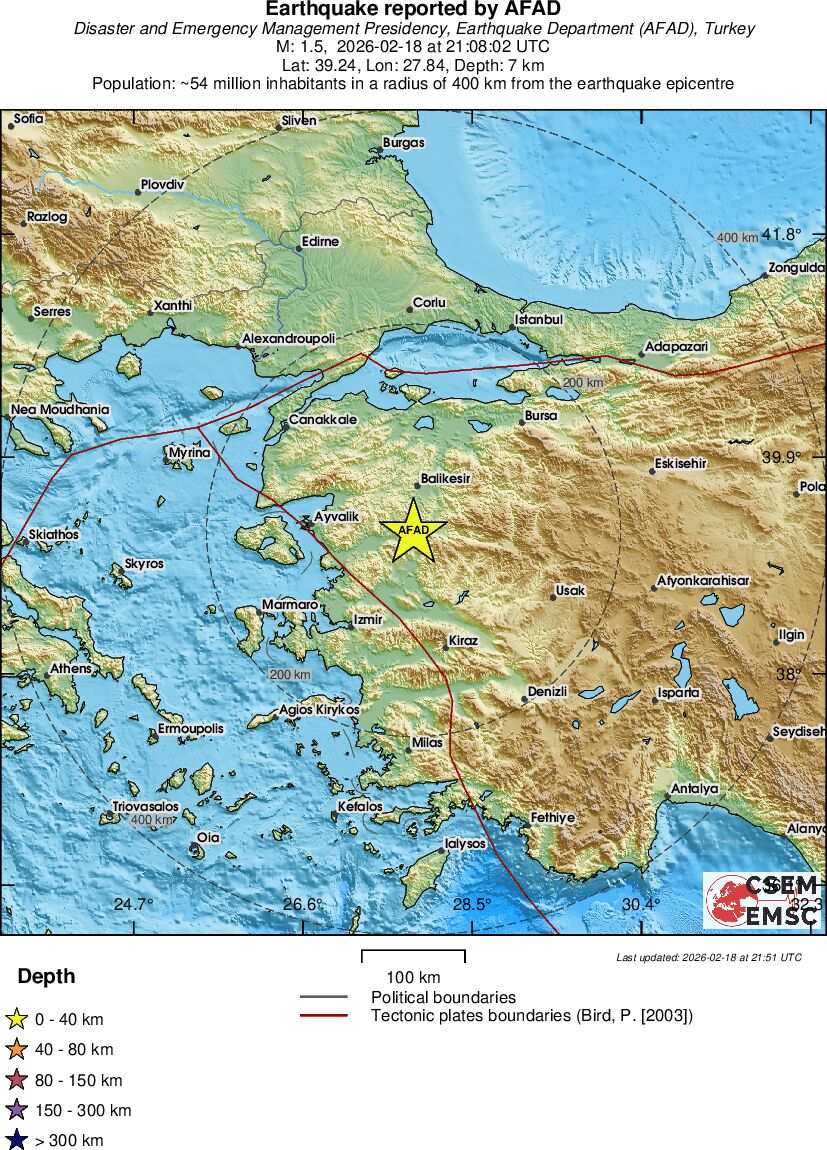 | 1.5 | 7 | 4402 | 20:50 | Link | Minor Earthquake- WESTERN TURKEY - Today |