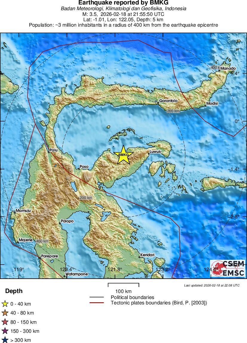 | 3.5 | 5 | 14487 | 21:55 | Link | Minor Earthquake- SULAWESI, INDONESIA - Today |