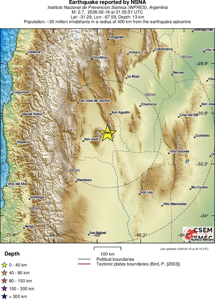 | 2.7 | 13 | 8871 | 21:35 | Link | Minor Earthquake- SAN JUAN, ARGENTINA - Today |