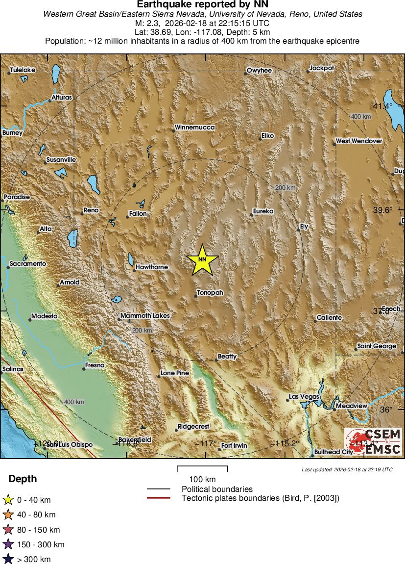 | 2.3 | 4.7 | 8559 | 22:15 | Link | Minor Earthquake- NEVADA - Today |