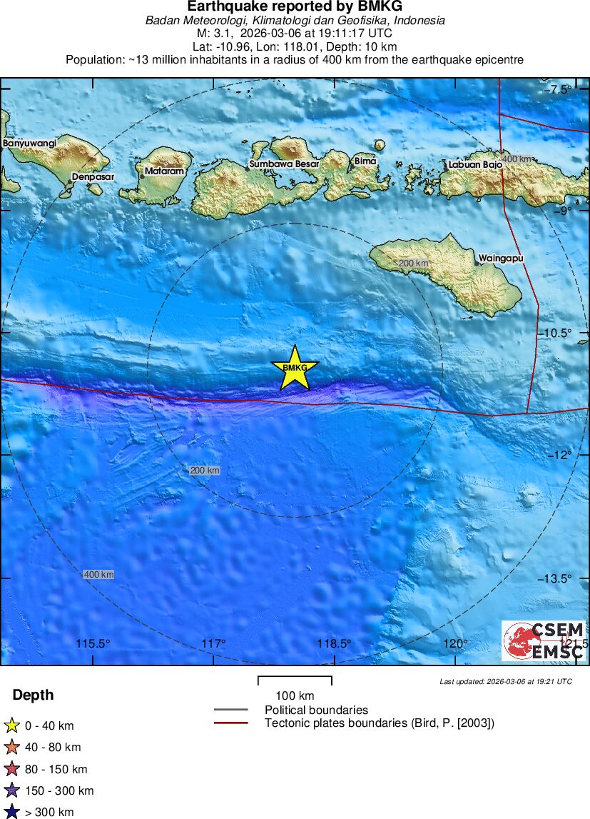 | 3.1 | 10 | 14849 | 19:11 | Linkki | Pieni maanjäristys- SOUTH OF SUMBAWA, INDONESIA - Tänään |