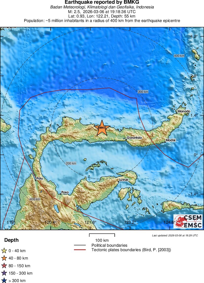 | 2.5 | 55 | 14349 | 19:18 | Linkki | Pieni maanjäristys- MINAHASA, SULAWESI, INDONESIA - Tänään |