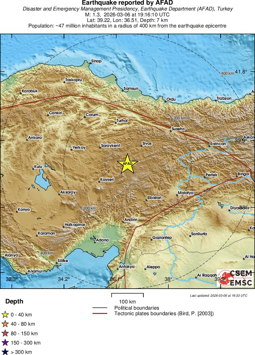 | 1.3 | 7.1 | 4816 | 19:16 | Linkki | Pieni maanjäristys- CENTRAL TURKEY - Tänään |