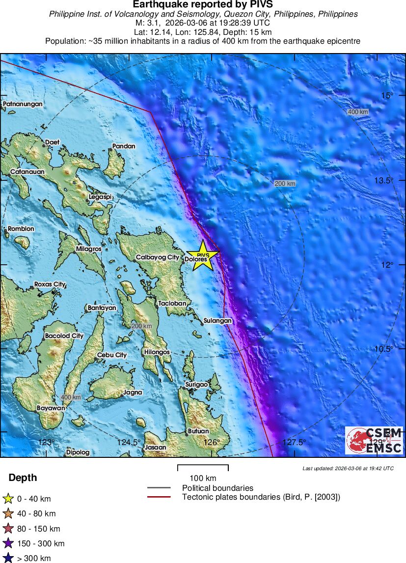 | 3.1 | 15 | 13667 | 19:28 | Linkki | Pieni maanjäristys- SAMAR, PHILIPPINES - Tänään |