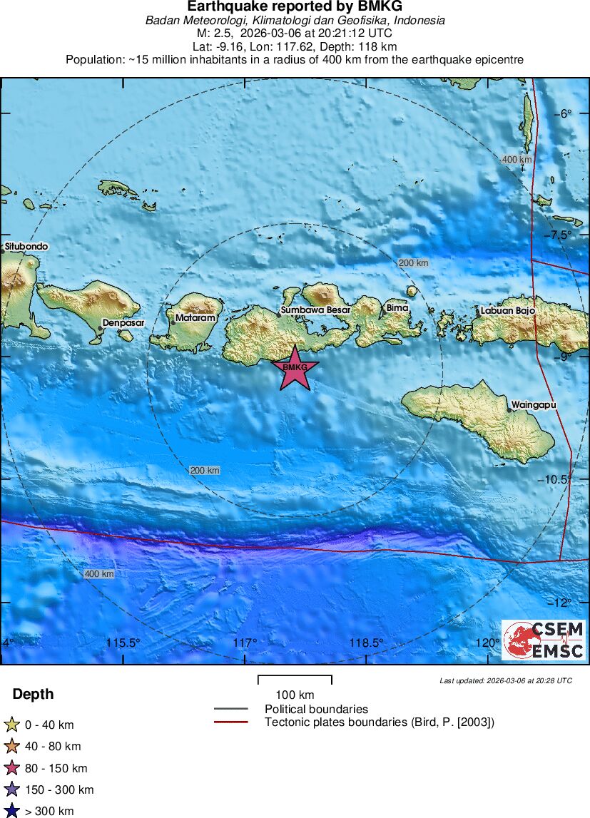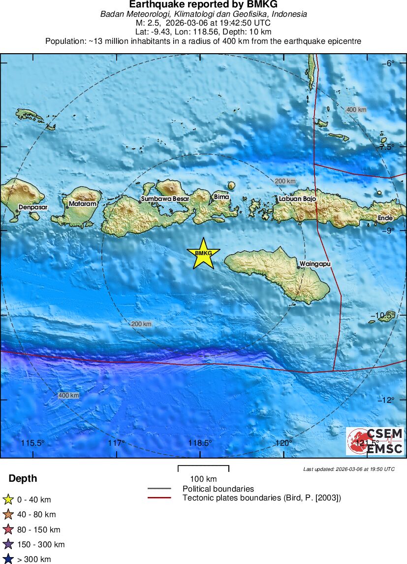| 2.5 | 10 | 14798 | 19:42 | Linkki | Pieni maanjäristys- SUMBAWA REGION, INDONESIA - Tänään |