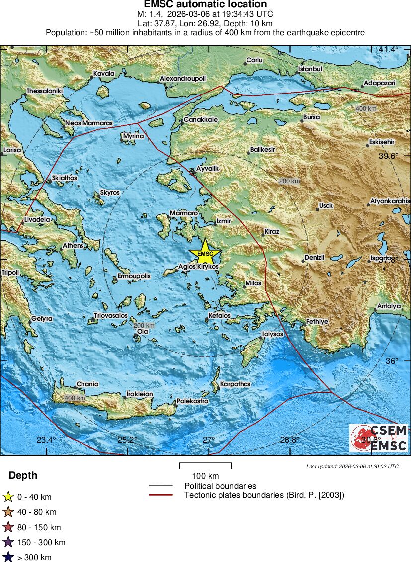 | 1.4 | 10.1 | 4007 | 19:34 | Linkki | Pieni maanjäristys- DODECANESE ISLANDS, GREECE - Tänään |