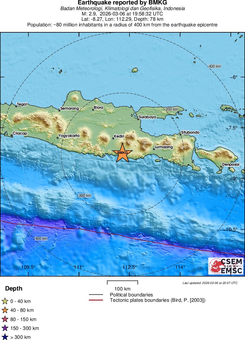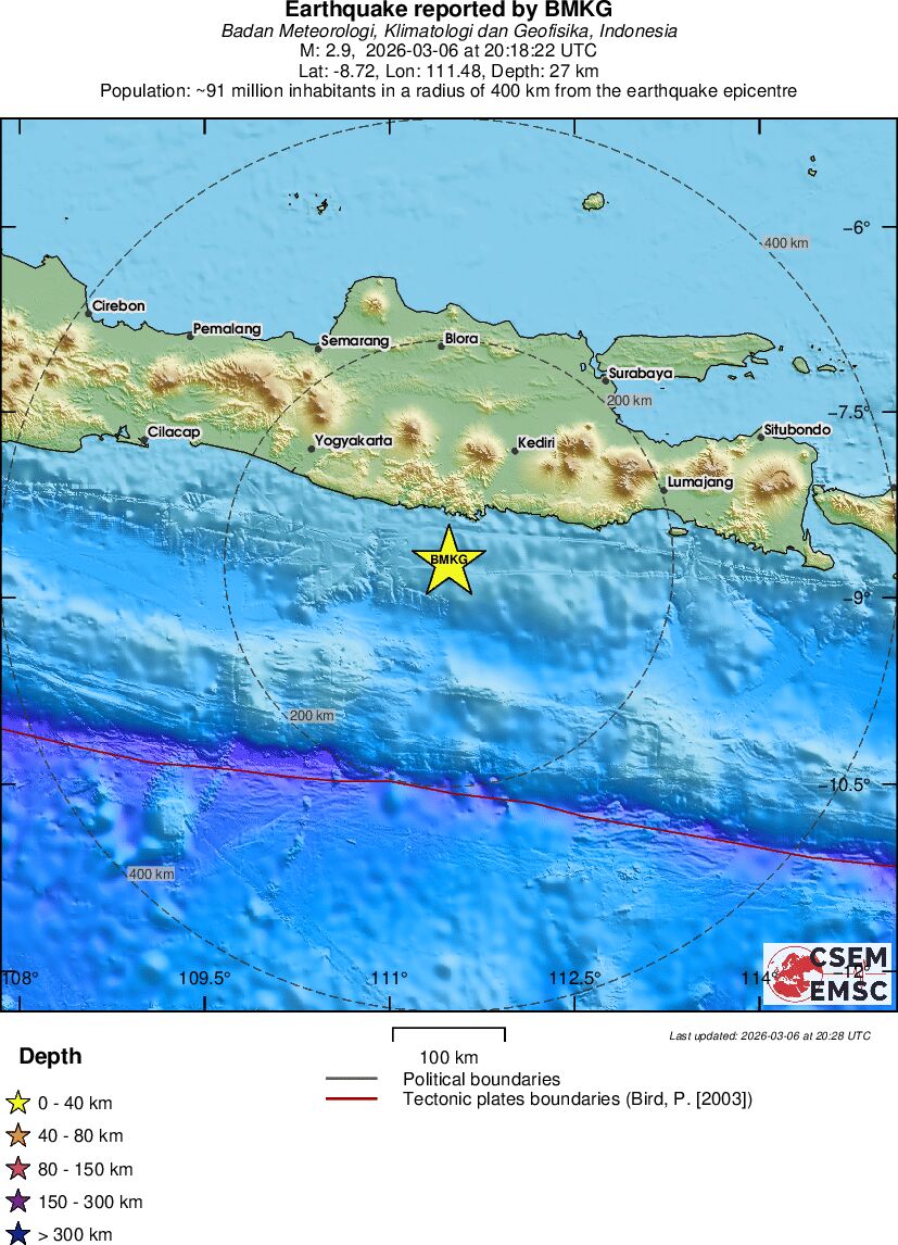 | 2.9 | 27 | 14120 | 20:18 | Linkki | Pieni maanjäristys- JAVA, INDONESIA - Tänään |