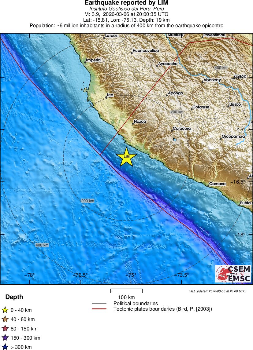 | 3.9 | 19 | 8184 | 20:00 | Linkki | Pieni maanjäristys- NEAR COAST OF CENTRAL PERU - Tänään |