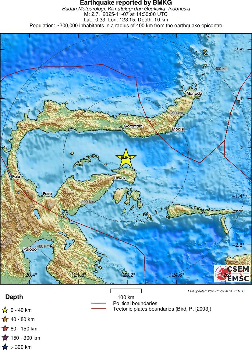 | 2.7 | 10 | 9024 | 14:30 | Poveznica | Manji potres- SULAWESI, INDONESIA - Danas |