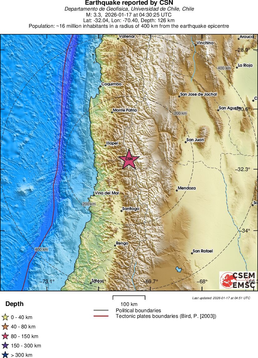 | 3.3 | 125.9 | 5661 | 04:30 | Länk | Mindre jordbävning- COQUIMBO, CHILE - I dag |