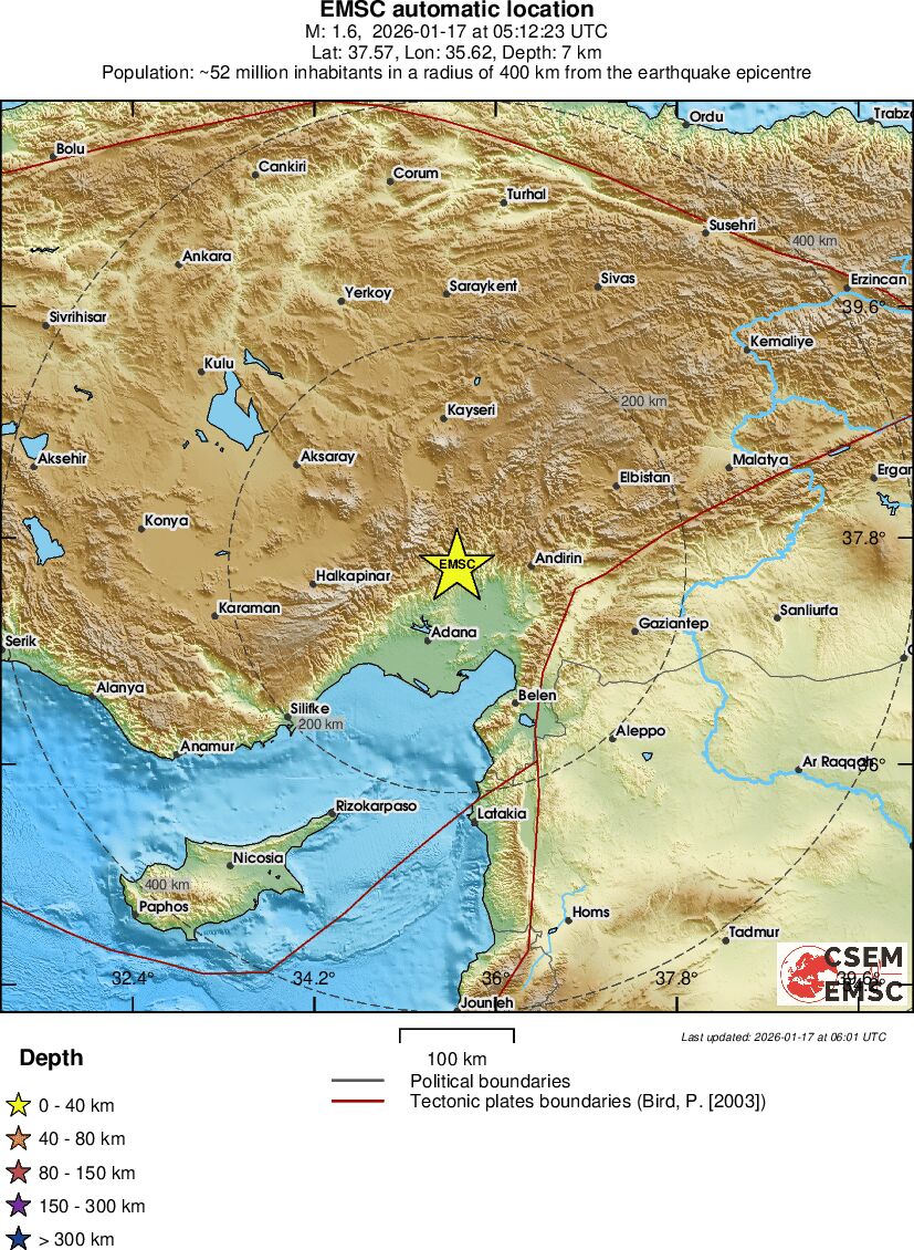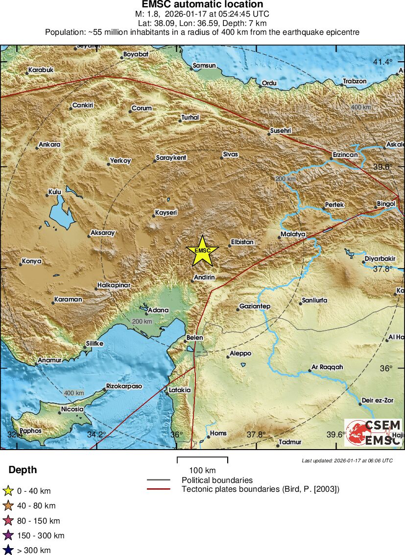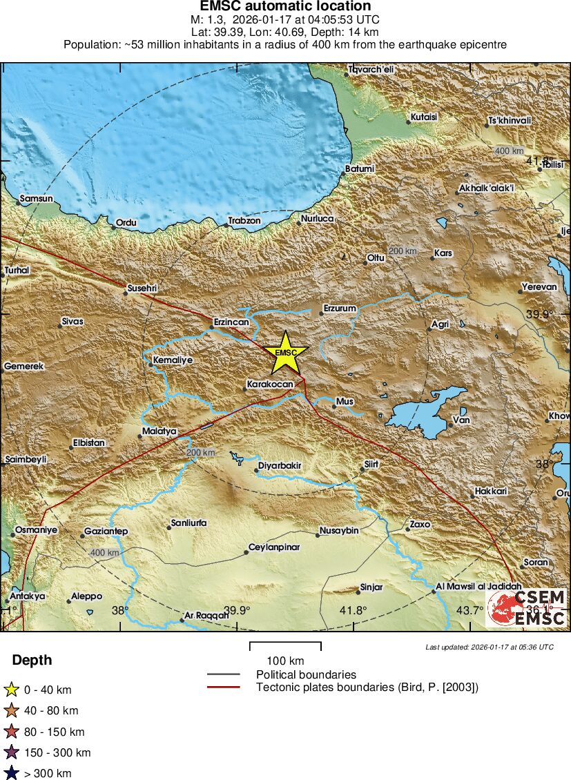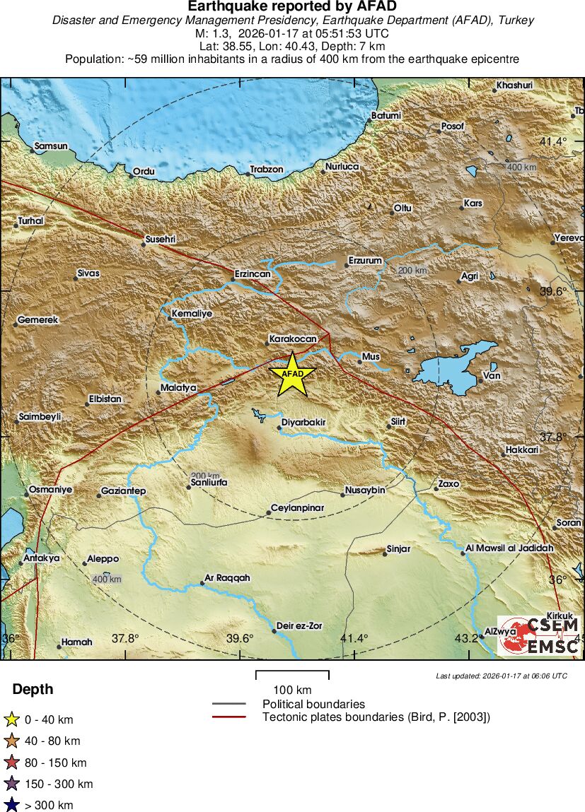 | 1.3 | 14.3 | 3211 | 04:05 | Länk | Mindre jordbävning- EASTERN TURKEY - I dag |