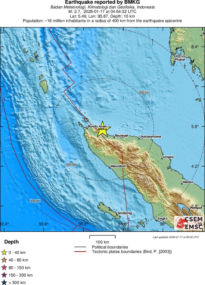 | 2.7 | 10 | 7327 | 04:54 | Länk | Mindre jordbävning- NORTHERN SUMATRA, INDONESIA - I dag |