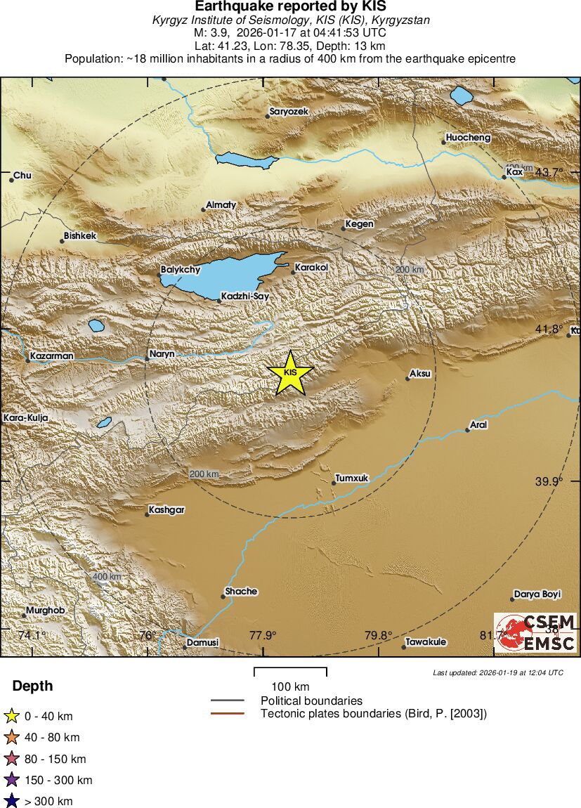 | 4.4 | 1 | 5041 | 04:41 | Länk | Lätt jordbävning- SOUTHERN XINJIANG, CHINA - I dag |