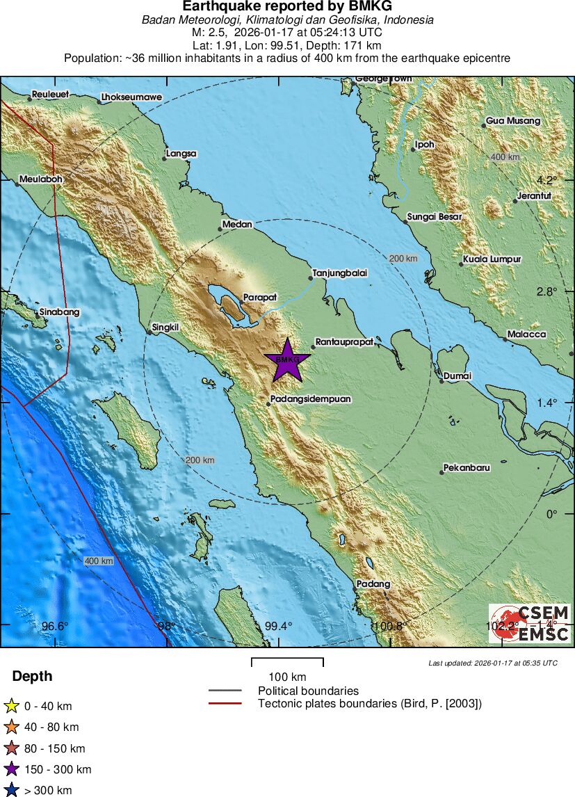 | 2.5 | 171 | 7675 | 05:24 | Länk | Mindre jordbävning- NORTHERN SUMATRA, INDONESIA - I dag |