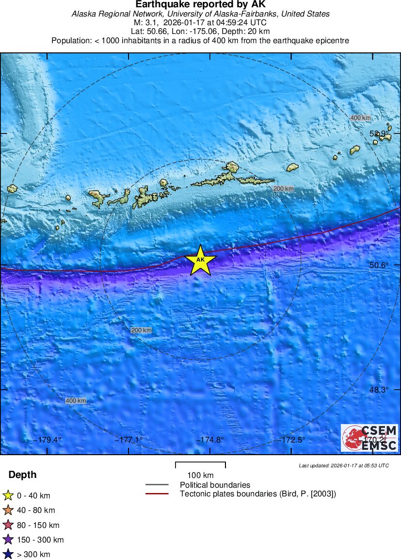 | 3.1 | 19.5 | 6518 | 04:59 | Länk | Mindre jordbävning- ANDREANOF ISLANDS, ALEUTIAN IS. - I dag |