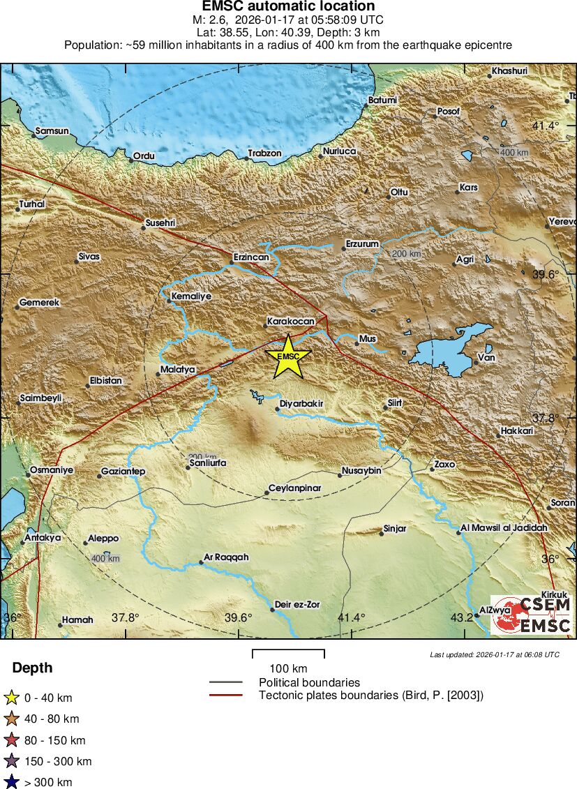 | 2.6 | 2.7 | 3206 | 05:58 | Länk | Mindre jordbävning- EASTERN TURKEY - I dag |