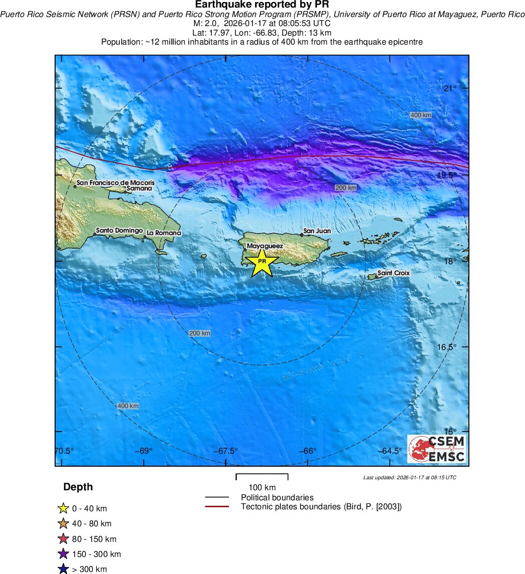 | 2 | 13 | 5200 | 08:05 | Länk | Mindre jordbävning- PUERTO RICO - I dag |