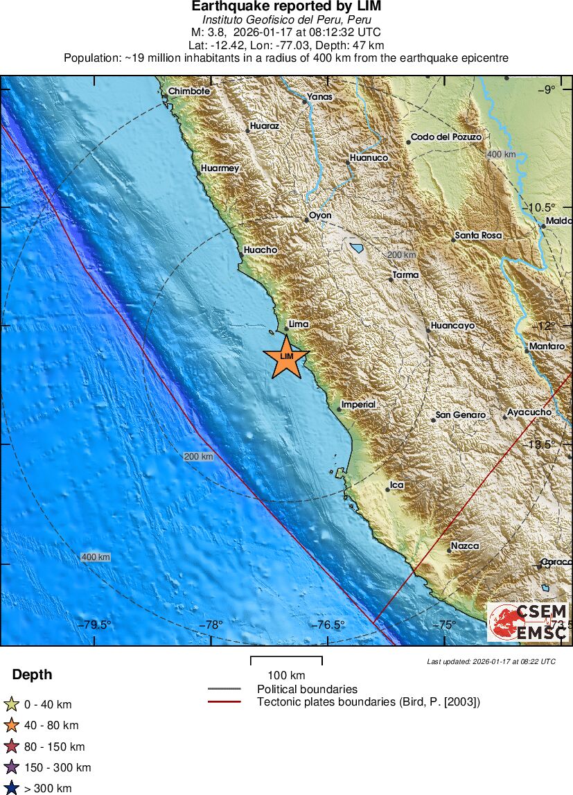 | 3.8 | 47 | 8090 | 08:12 | Länk | Mindre jordbävning- NEAR COAST OF CENTRAL PERU - I dag |