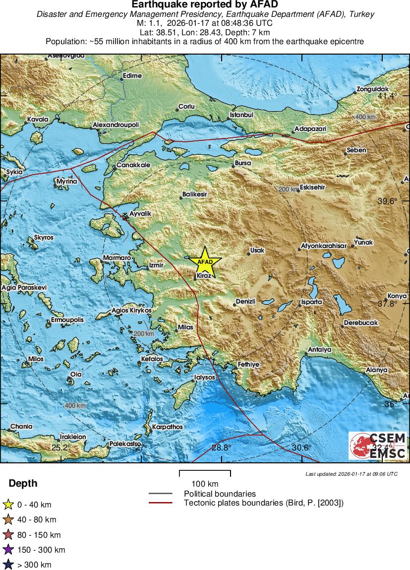 | 0.9 | 7 | 4269 | 09:38 | Länk | Mindre jordbävning- WESTERN TURKEY - I dag |