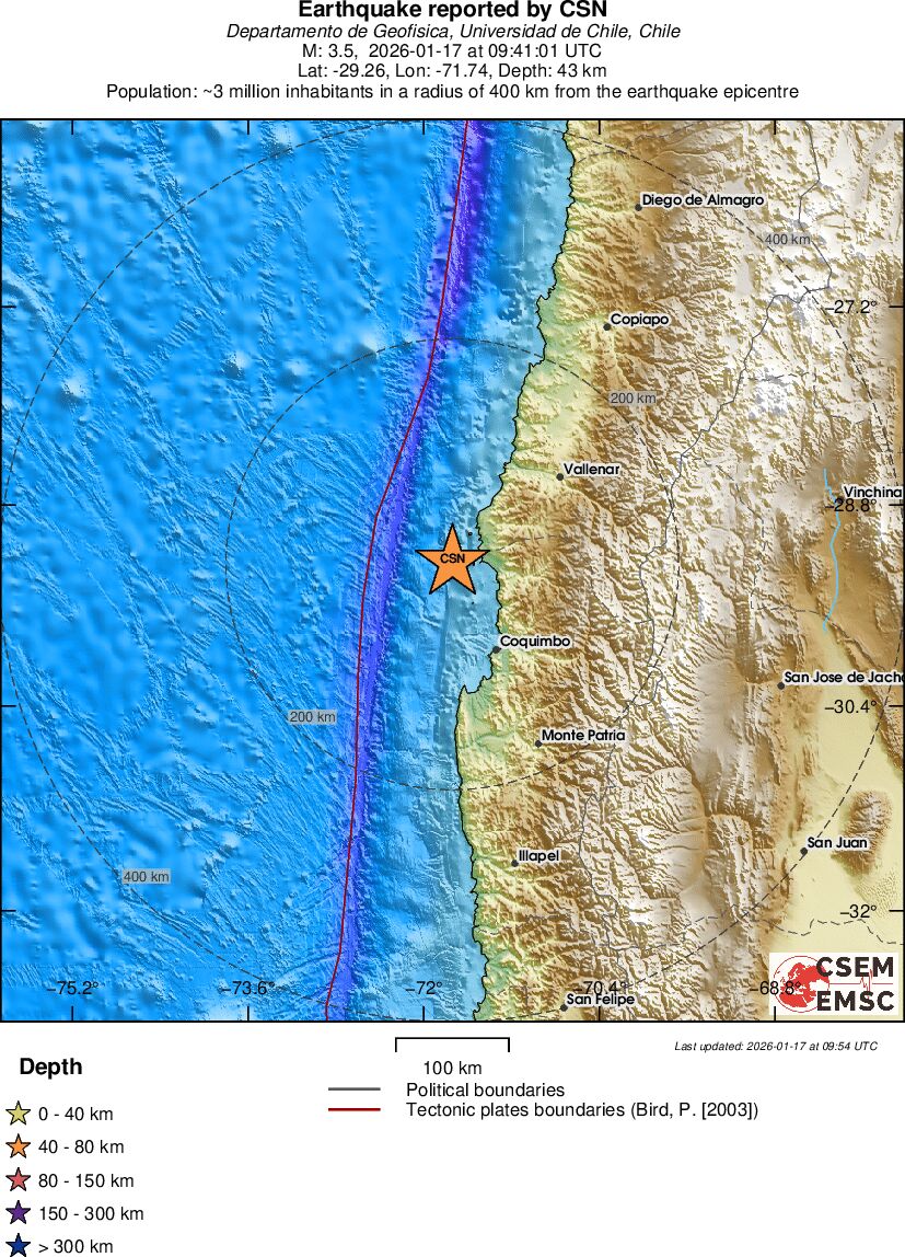 | 3.5 | 43.4 | 8975 | 09:41 | Länk | Mindre jordbävning- OFFSHORE COQUIMBO, CHILE - I dag |